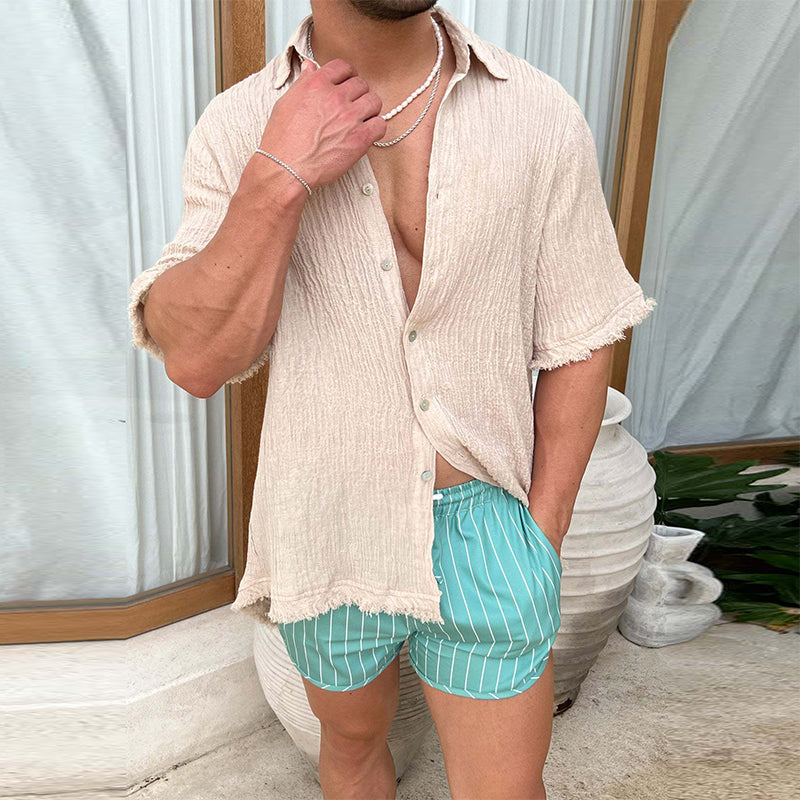 • Vielseitiges Design: Die lockere Silhouette des Hemdes passt zu gemusterten Shorts für den Strand oder Jeans für den Abend, ideal für verschiedene Anlässe.